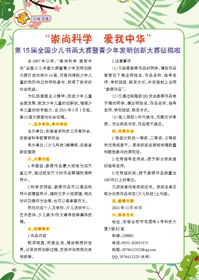 “崇尚科學 愛我中華”第15屆全國少兒書畫